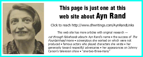 | If you are a fan of Ayn Rand’s writings, you likely know that she wrote the screenplay for The Fountainhead, adapted from her novel, made into a movie with Gary Cooper and Patricia Neal. If you’re a bigger fan, you likely know that she wrote the screenplay for Love Letters, based on another writer’s novel, and that it was made into a movie with Jennifer Jones and Joseph Cotten. And if you’re still more knowledgeable, you likely know about the movie You Came Along, where she and another screenwriter both received credit, the other writer having originated the story, and with the lead roles played by Lizabeth Scott and Robert Cummings,