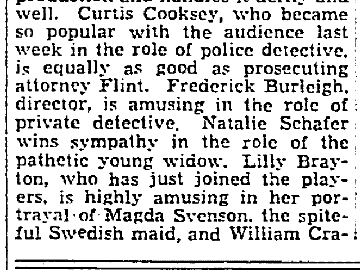 | Playing the role of handwriting expert for the police James Chandler in that same Maine production was a 19-year-old man just starting out in professional acting. image: program for engagement of Rose Hobart in Maine |