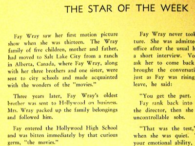 | Fay Wray was also a busy lead actress in early 1930s Hollywood films who thereafter has been most remembered for some classic horror films: particularly as the young woman in King Kong’s hand in the original King Kong— images: program for engagment of FayWray in Great Neck, Long Island; the two featured co-stars were veterans of the play (discussed elsewhere at this web site) |